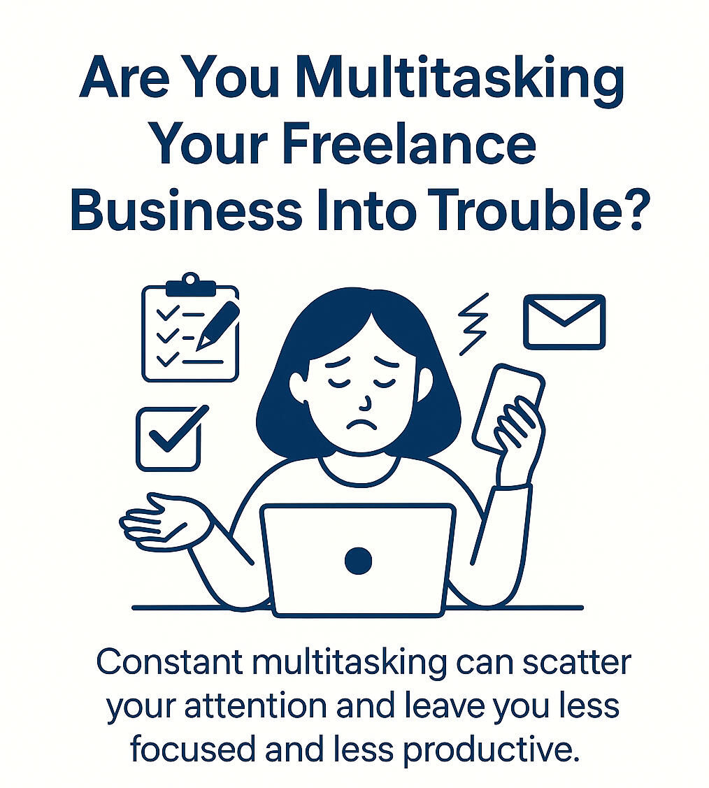 Think about how often you jump between tasks in a single hour — designing for one client, replying to another, then shifting into bookkeeping. It feels efficient, but those mental pivots reduce your depth of focus.
